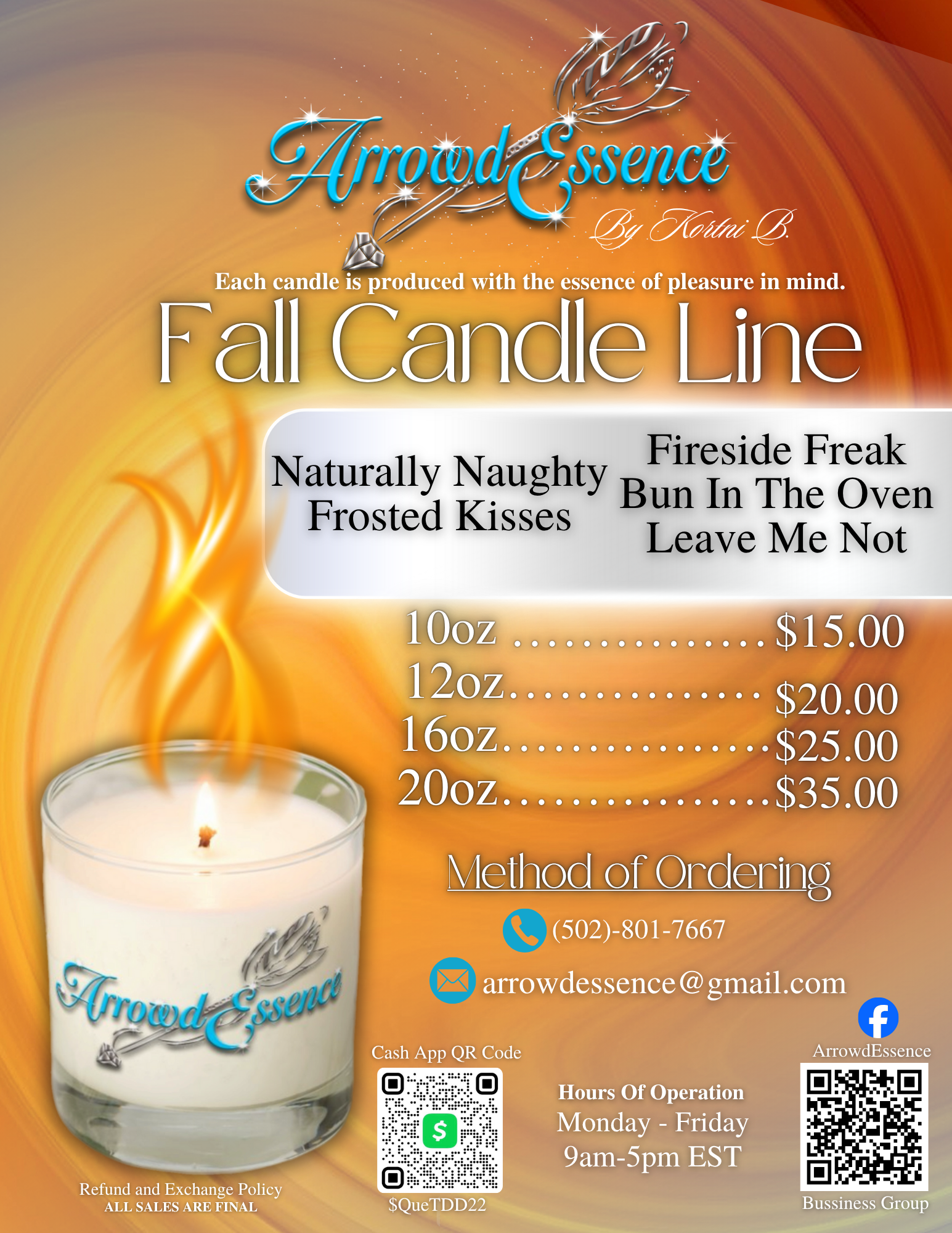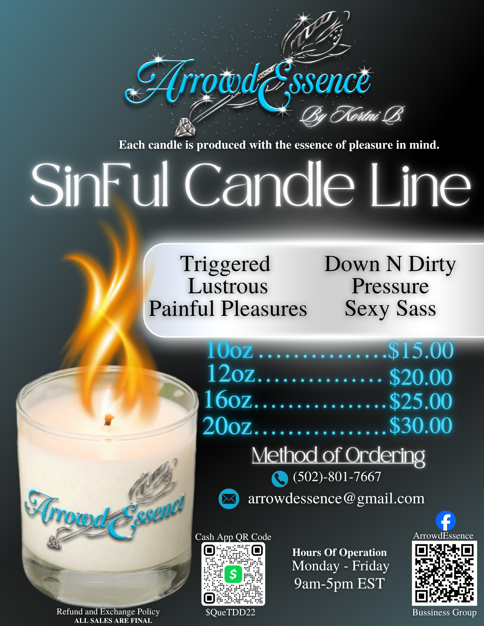 ArrowdEssence is a candle company designed to heighten your senses. Each candle is produced with “The Essence of Pleasure in Mind”. Bonded and mixed with colors and fragrances that embody the soul with essential behaviors.